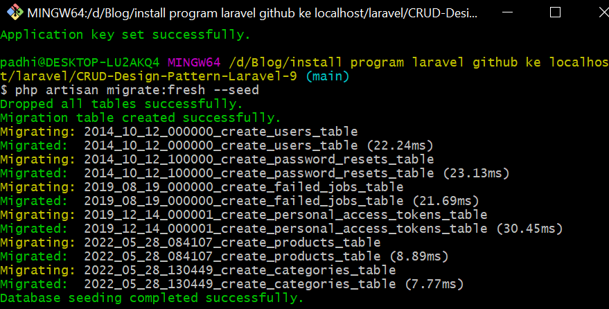 Ok sekarang kita migrate database, caranya kalian ketikkan pertintah berikut