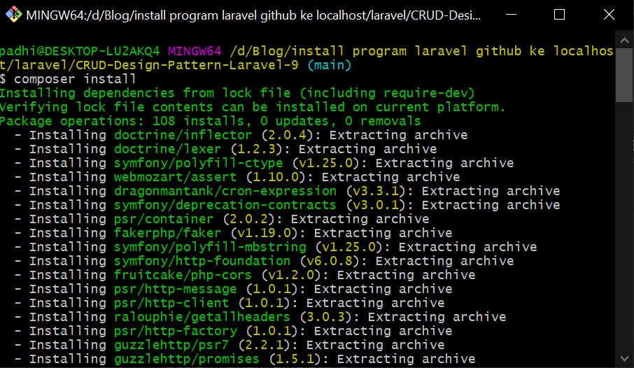 Kalian perlu download terlebih dahulu program Laravel yang ingin diinstall pada localhost, sebagai contoh saya menggunakan program Laravel berikut https://github.com/padhilahm/CRUD-Design-Pattern-Laravel-9 .