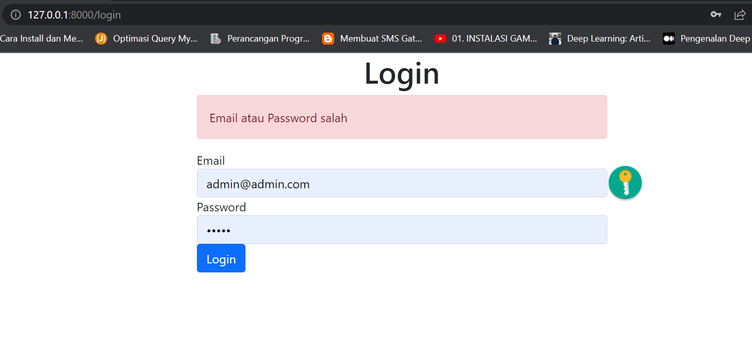 Halo, Kembali lagi di kodee.my.id, kali ini saya akan Kembali membahas mengenai framework Laravel, lebih tepatnya disini saya akan menggunakan Laravel 9. Sebelumnya jangan lupa juga ya kunjungi Tutorial Laravel 9 Membuat CRUD MySQL Sederhana karena post ini adalah lanjutan dari tutorial tersebut. Tutorial kali ini saya akan membahas mengenai cara membuat login sederhana pada Laravel 9 beserta hak akses middleware. Tanpa basa basi langsung aja yuk ke tutorialnya.