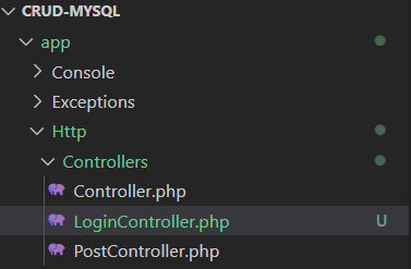setelah kalian ketik perintah diatas maka akan terbuat sebuah file dengan nama LoginController.php pada folder app/Http/Controllers