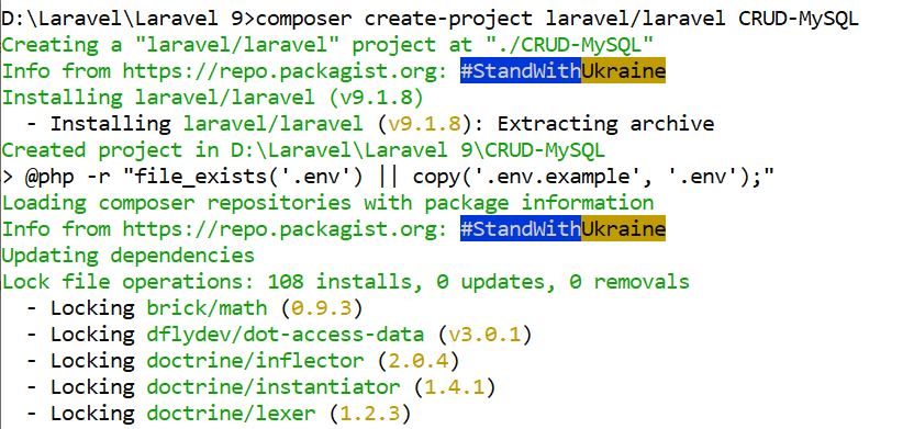 Silahkan tunggu sampai prosesnya selesai, kemudian buka folder project laravelnya